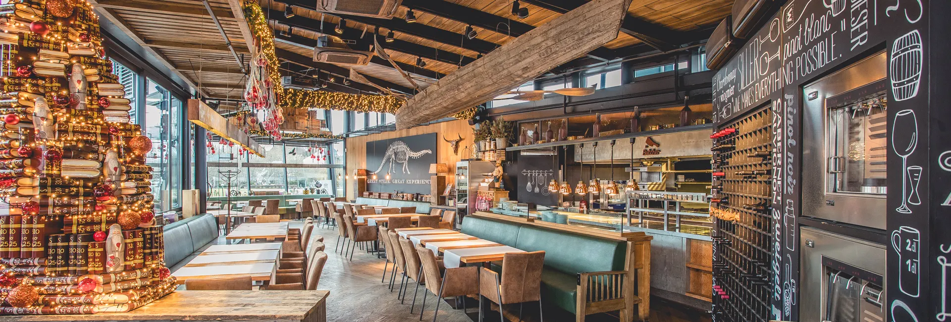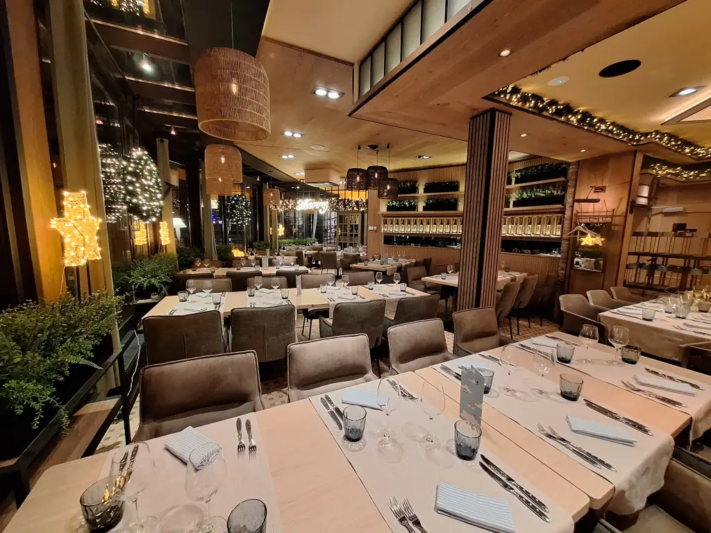 A 2025-ben teljeskörűen felújított étteremrészünket friss, naturális design jellemzi, remek opció lehet kisebb privát és üzleti rendezvényekre egyaránt, illetve innen belátás nyílik a látványkonyhánkra is.