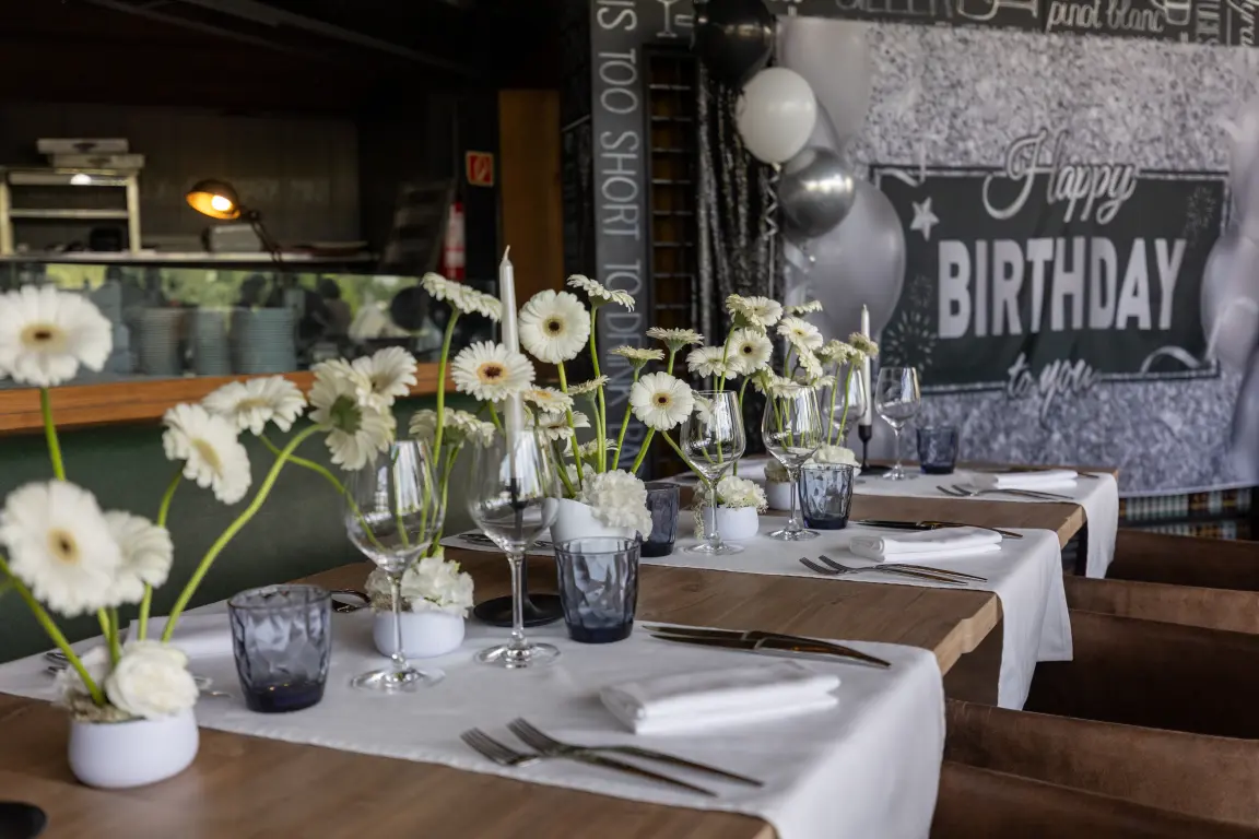 Éttermünk hosszú évtizedek óta ad helyet elegáns üzleti vacsoráknak, komoly munkaebédeknek. Köszöntöttünk már számtalan szülinapost, és boldogan segédkeztünk sok-sok ifjú pár esküvőjének szervezésében.