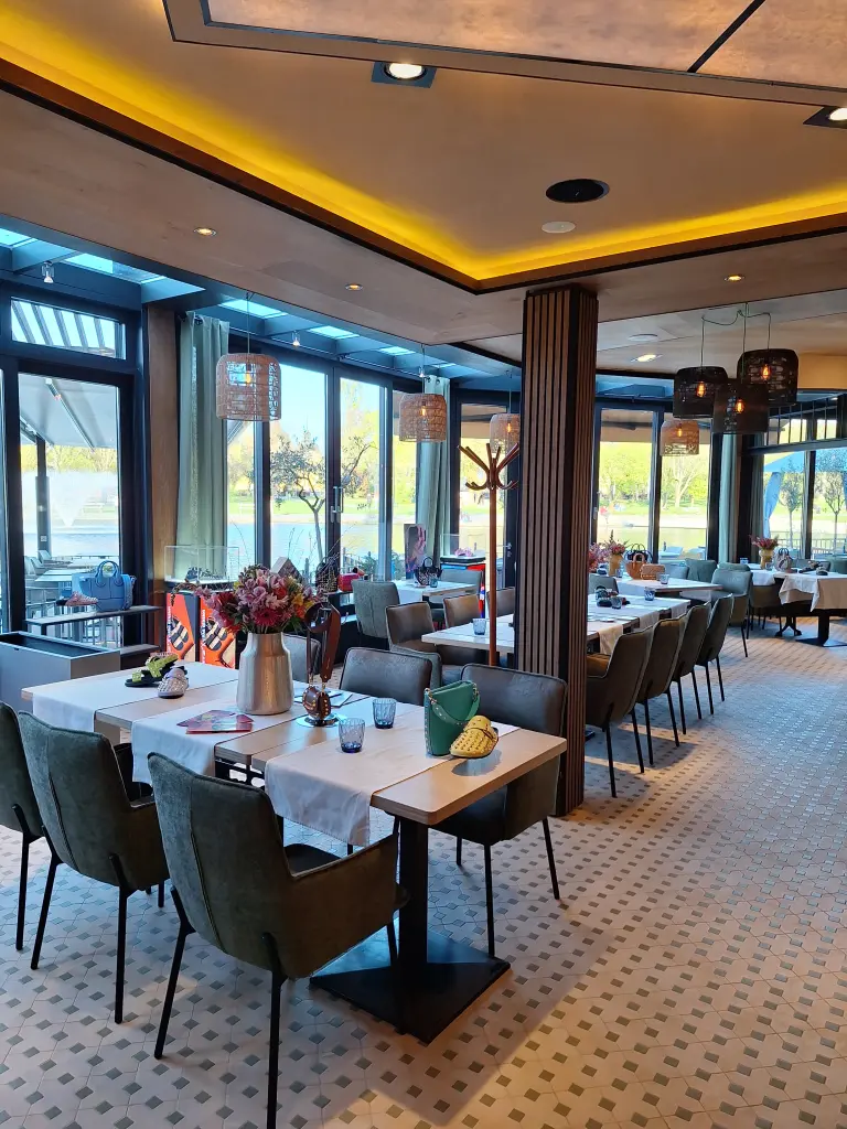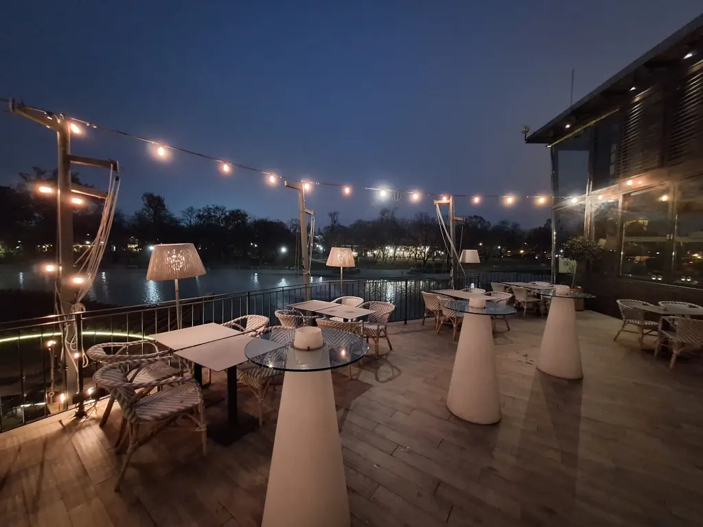 Nyáron az elhúzható üvegajtóknak és nyitható tetőnek köszönhetően fedett teraszként is funkcionál, míg télen a fűtött teremből élvezhetik a vendégek a Városligeti tó sejtelmes hangulatát.